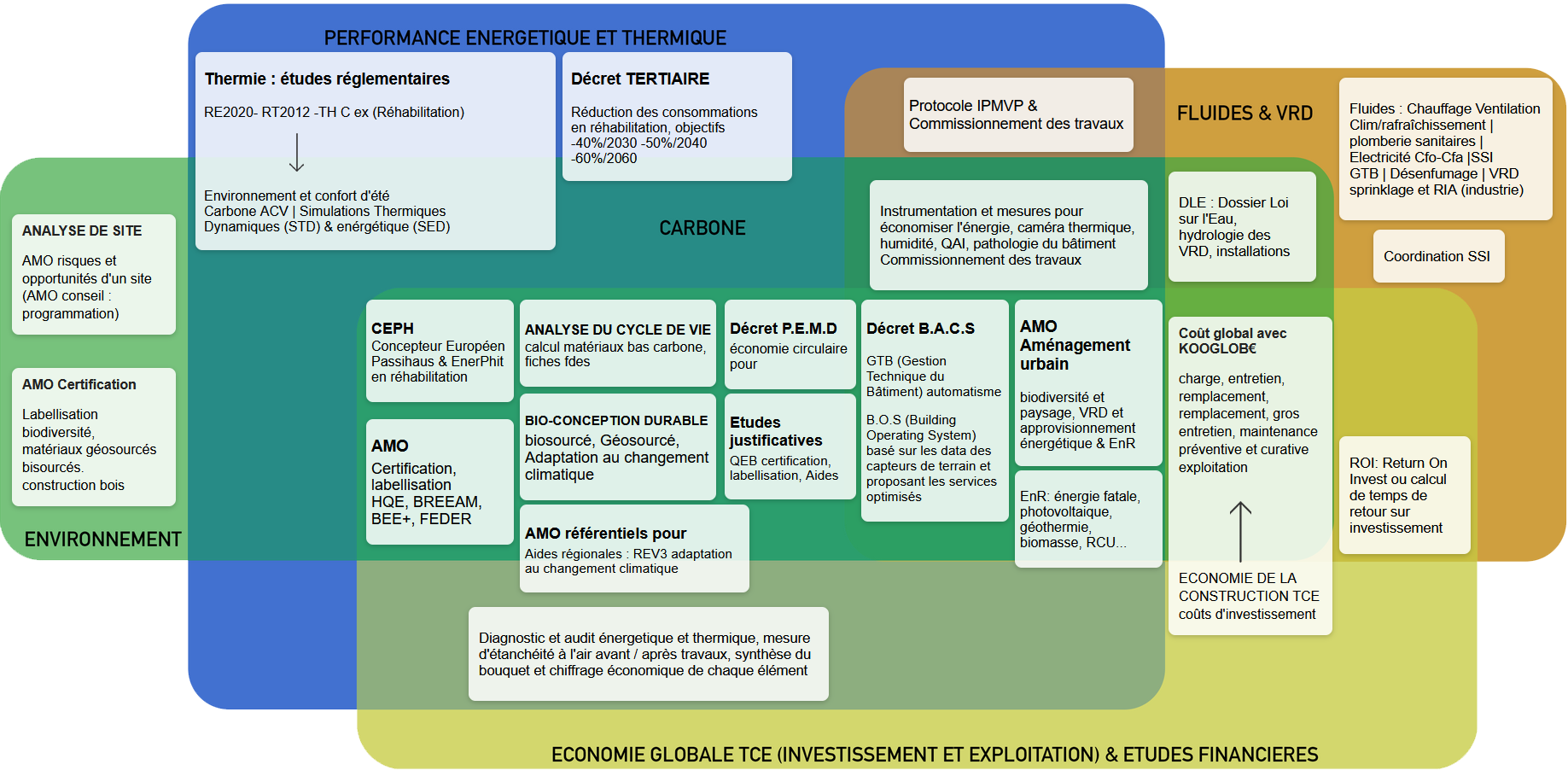 ✅ Études techniques (thermie, ACV CO2, énergétique, équipements techniques, électricité, chauffage, plomberie…)